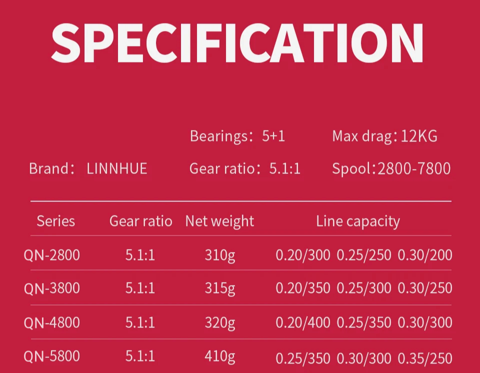 Long Shot 2800-5800 6BBS 12kg Metal Grip Spinning Reel